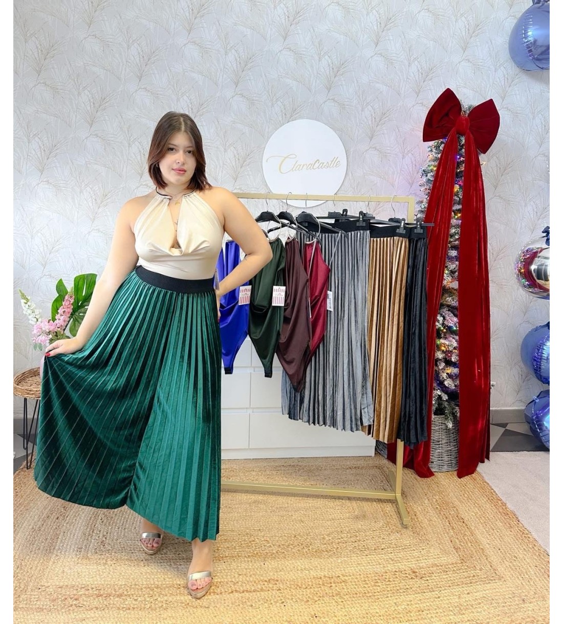 Falda midi terciopelo