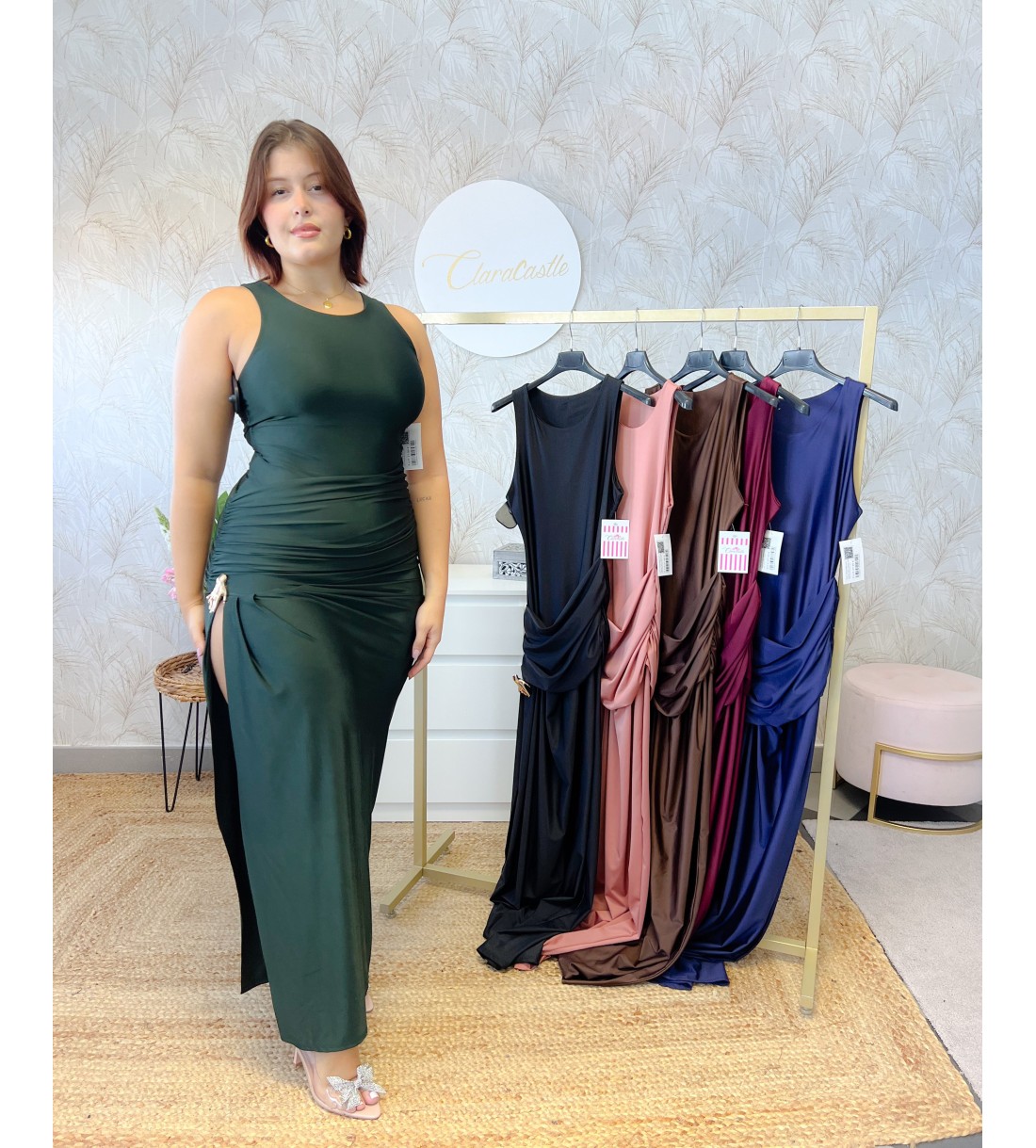 Vestido falda detalle dorado